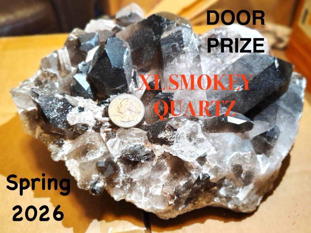![]() | Every attendee gets a free ticket for a chance to win this beautiful XL Smokey Quartz. Drawing at the end of the show at 5:00pm Sunday. Retail value of about $250. |